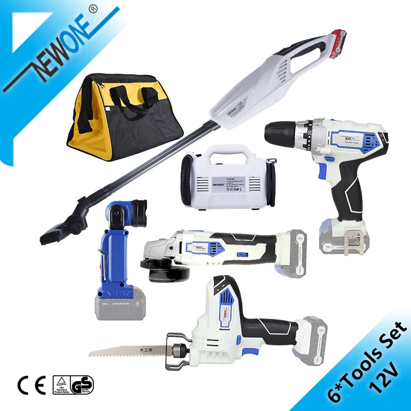 Clearance ONE/Keinso 12V 6-Tool Lithium Cordless Combo Kit Angle Grinder Electric Drill LED Light Vacuum Clea